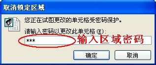 7、然后在黃綠區域輸入數據,就會跳出“取消鎖定區域”方框,如果沒有密碼,就不能輸入數據,若輸入正確密碼,就可以編輯該區域了。