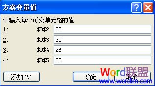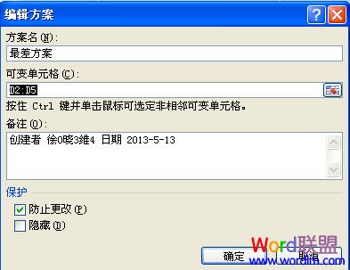 ?、嘣趶棾龅?ldquo;方案變量值”里輸入你想設置的最差方案的數值,然后單擊“確定”按鈕后即完成兩個方案的創建。