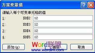 ⑤在彈出的“方案變量值”對話框中輸入你想設置的最好方案的數值,然后單擊“確定”按鈕。
