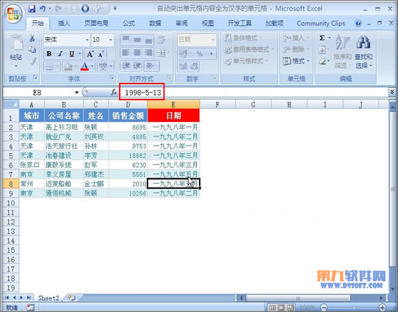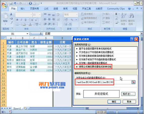 怎樣在Excel中自動突出純漢字的單元格 武林網