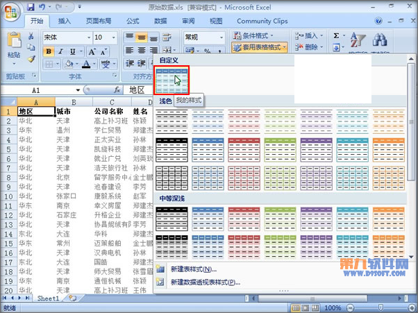 1、啟動Excel2007,導入源數據表,單擊菜單欄--開始--套用表格樣式--新建表樣式。