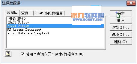 2、彈出選擇數據源對話框,在數據庫標簽中,選擇Excel Files*,單擊確定。
