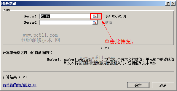 第5步:在打開的SUM求和參數參數窗口中找到“Number1”后面的‘“