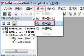 使用快捷鍵Ctrl+F11鍵,打開VBA編輯界面,點擊“插入”菜單下的子菜單“模塊”: