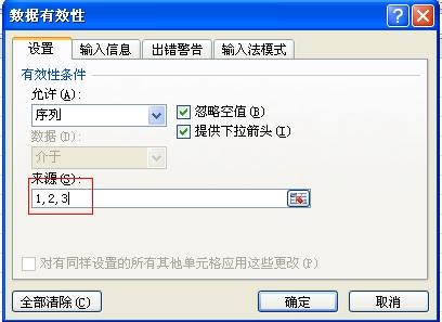 (下拉列表的來源,還可以選定事先輸入好的下拉內容的單元格區域)