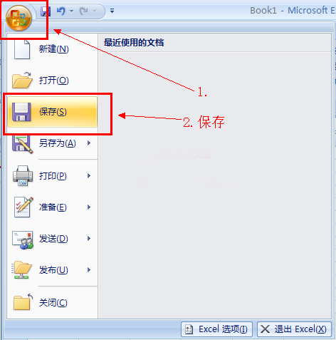 第5步 :這時我們可以試一下,再次單擊左上次Office按扭,在彈出的office菜單中單擊保存。