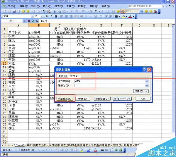 最后,我們只需對“用戶映射表”稍作修改即可。復制“用戶映射表”數據,在新建的工作表中,右鍵單擊,選擇“選擇性粘貼”,在彈出的窗口中,選擇“數值”,確定后便只留下數值,而剔除了所有的公式,接著按下快捷鍵Ctrl+F,彈出“查找和替換”窗口,切換至“替換”選項卡,在“查找內容”欄中輸入#N/A,保持“替換為”欄為空(圖3),單擊“全部替換”,得到最終結果(圖4)。