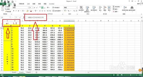 2、我們在活動單元格的最上端打出a=1.2,然后在公式中引用B1單元格,輸入公式“=B1*(C2+D2+E2)/F2”我們的問題來了,在拖拽的過程中,引用了的單元個是依次向下的那部分,B2、B3、B4...這里我們就需要絕對引用了