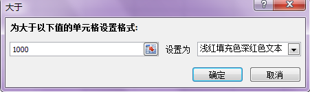 4、在“為大于以下值的單元格設(shè)置格式”框中輸入“1000”。