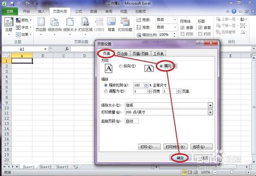 3、在頁面設(shè)置對(duì)話框中點(diǎn)擊“頁面”,再勾選”縱向“或”橫向“打印,最后點(diǎn)擊”確定“。