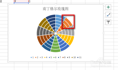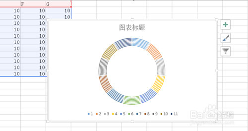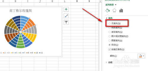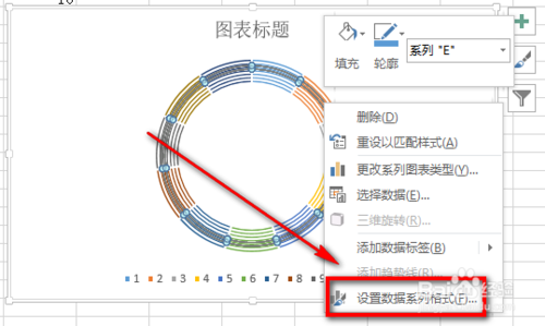 5、接下來是重點,我們利用顏色填充 來做所要做的圖表,我們點擊圓環 ,然后雙擊某一個單獨的環——右鍵——設置數據系列格式(或者直接選擇填充)——選擇無填充或者純色填充為白色 ,這樣一個一個做實在是太慢,那么我們就要善于運用F4鍵 ,這樣會事半功倍