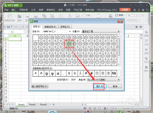 9、帶圈的字體出來了,隨便點擊喜歡的,然后點擊“插入”。