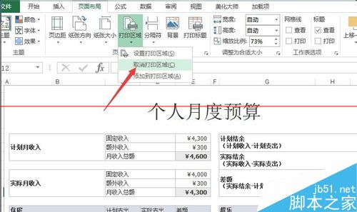 2、單擊【頁(yè)面布局】,選擇【頁(yè)面設(shè)置】中的【打印區(qū)域】,選擇【取消打印區(qū)域】