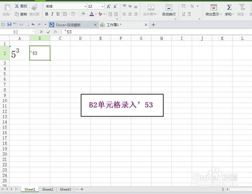 在EXCELB1單元格錄入“53