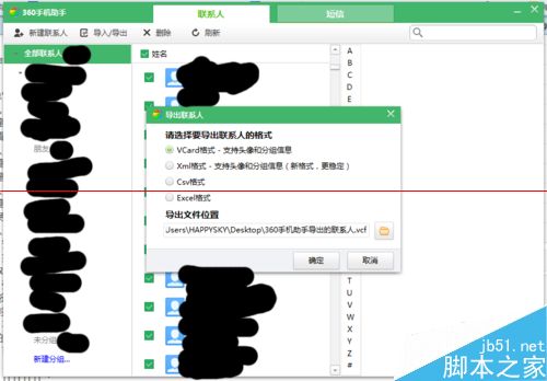 2、360手機助手連接成功手機后,點擊360手機助手的“聯系人”,接著點擊需要導出的電話的聯系人,點擊360手機助手的“導入/導出”,然后會出現導出的各種格式,選擇好自己需要導出的格式與保存位置點擊“確定”即可成功導出!