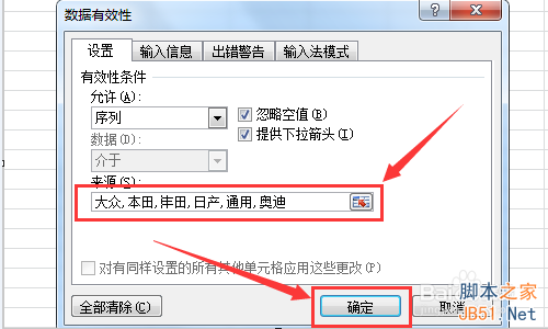 在“來源(S)”中按順序填寫題目要求的選項值,用英文輸入方式下的逗號隔開(特別提醒:一定要在英文輸入鉆頭下輸入逗號),輸入完點擊確認,如圖所示