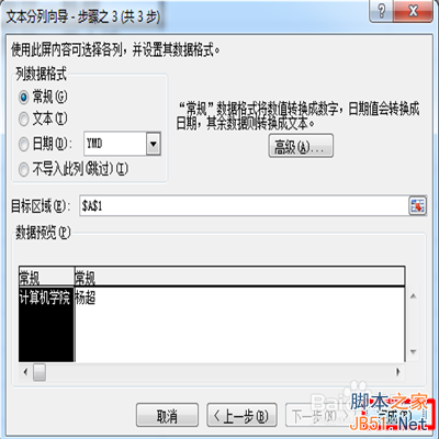 4、點擊"分列"即打開"文本分列向導"對話框,在第一個對話框下點擊下方"下一步"