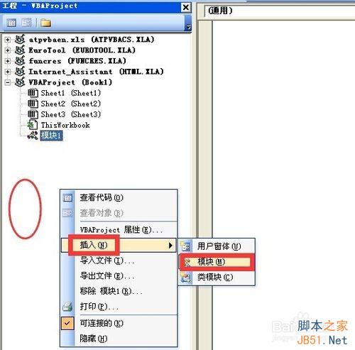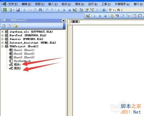 4、如圖所示模塊1、模塊2分別是通過菜單欄插入命令 和工程資源管理器點(diǎn)擊右鍵創(chuàng)建的模塊