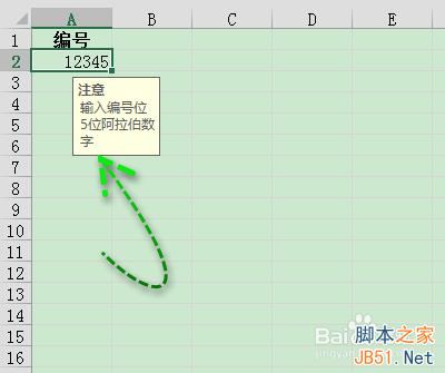 示例操作目的:以A列為號碼(編碼)列,要求是在A列只能鍵入5位數。