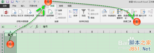 首先,在A列上方插入光標選中A列,在excel的菜單欄切換到“數據”選項卡,找到“數據工具”菜單組。