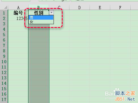設置成功后點擊B列單元格便會彈出男or女的二選一項了。