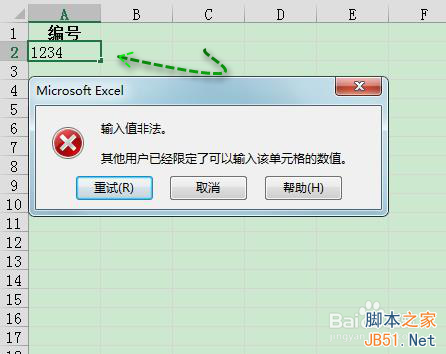 再次嘗試輸入“1234”,look,錯誤警告便會以你設置的內容出現了。