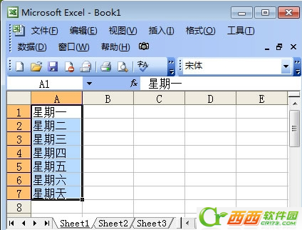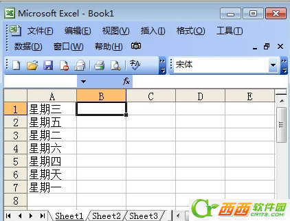 這里我以為星期來排序作演示,如下圖,從“星期一”到“星期五”,只是順序打亂了而已,下面我們就來將這順序排列好;