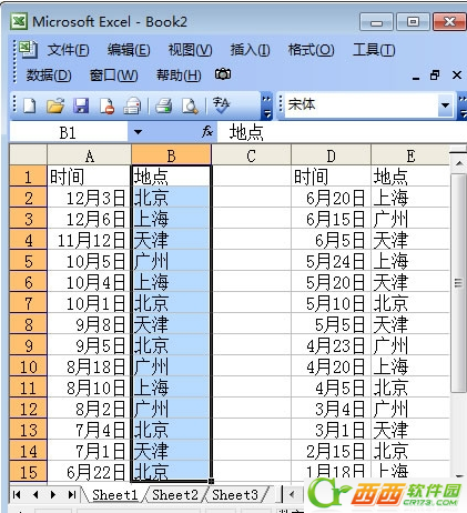 步驟二、回到Excel工作表,選中“地點”這一列;