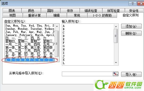 提示:如果您的“自定義序列”中沒有從 A 到 Z 這個排序方式,那么你可以在右邊“輸入序列”中手動添加進去,手動輸入從 A 到 Z ,每輸入一個字母就按一下回車,全部輸入完成后按“添加”按鈕,然后再選擇剛添加的“從A到Z”的排序方式,最后確定即可。