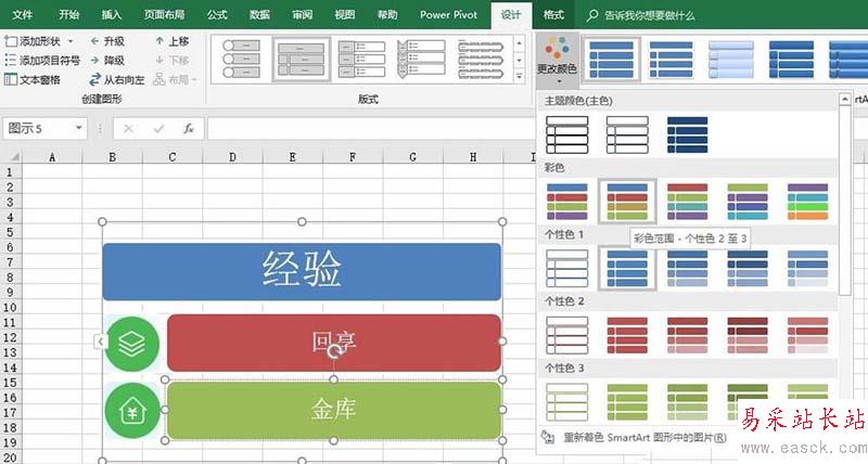 5、可以通過菜單中的“更改顏色”按鈕,來修改圖形的顏色