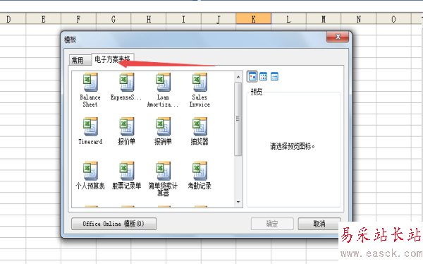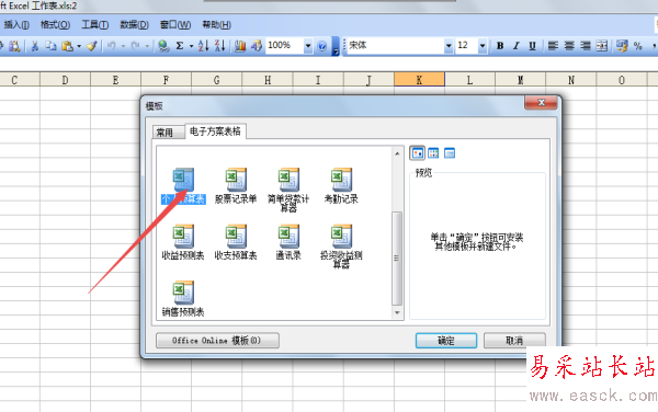 5、在”模板“的對話框中單擊”電子方案表格“選項卡。