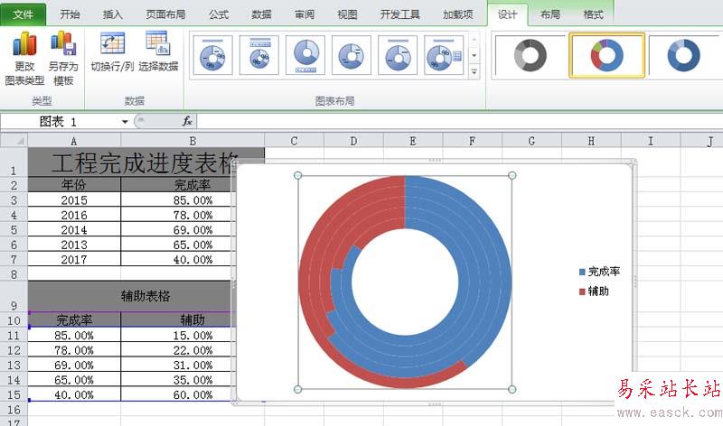 7、同樣方法對完成率圖表的顏色進(jìn)行調(diào)整,接著選擇圖例并刪除圖例,查看效果變化。