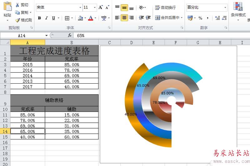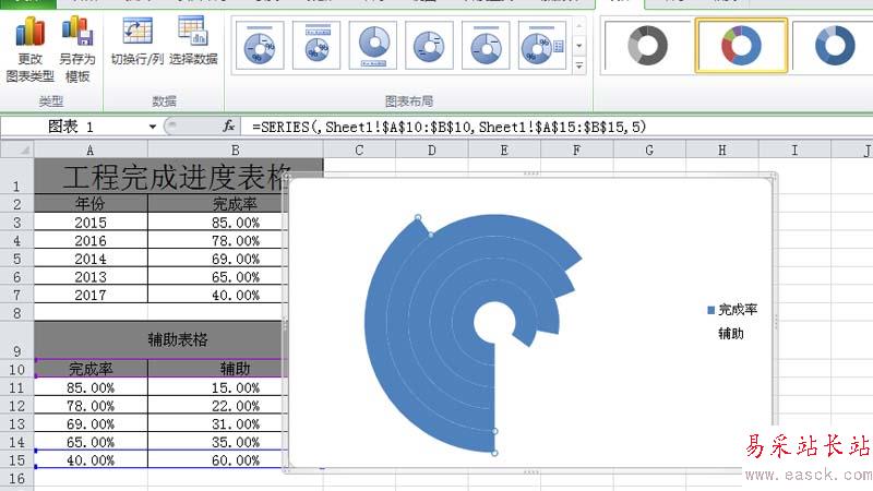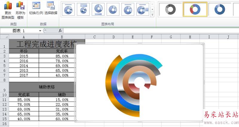9、調(diào)整圖表的的大小和位置,使其布局更加美觀,這樣分類圓環(huán)圖表就制作完成了。