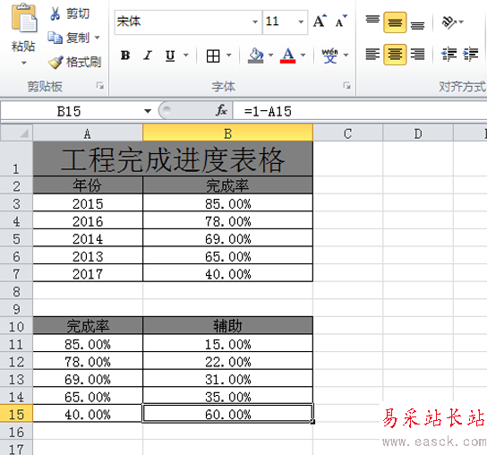 2、執(zhí)行數(shù)據(jù)-排序命令,按照完成率降序排列,接著在制作出另外一個輔助表格,輔助表格里輔助字段數(shù)字其實(shí)是未完成率。