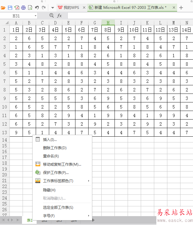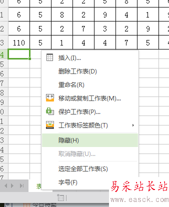 然后你再使用【選定全部工作表】命令,對(duì)剩下的三張表進(jìn)行更改。更改完了之后再隨便選擇一張表右鍵【取消隱藏】。你會(huì)發(fā)現(xiàn)其他三張表數(shù)據(jù)都被你更改了,而表1的原始數(shù)據(jù)沒(méi)有任何變化。