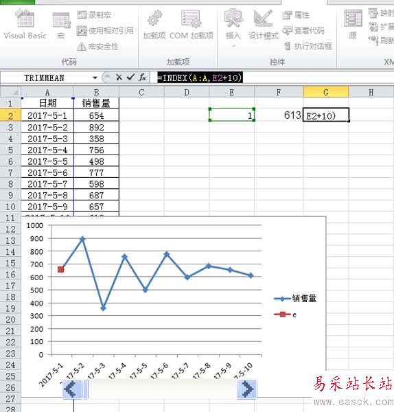 excel怎么制作隨著滾動條變化的動態圖表?