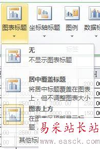 6、單擊 圖表標題,會發現有三個可以選,在這里我們選第三個: 圖表上方。意思是,我們要的圖表標題待會會出現在圖表上方 ,也可以進行修改啦。