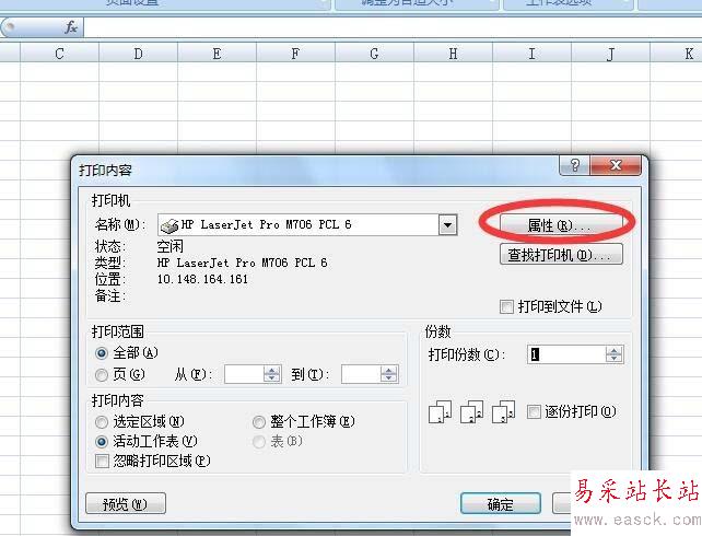 3、在打印內(nèi)容對(duì)話框中選擇“屬性”