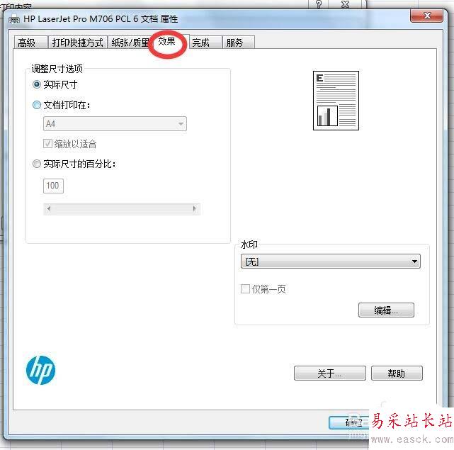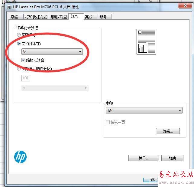 5、在效果欄目下,選擇“文件打印在A4”和“縮放以適合”