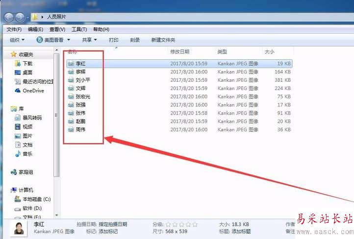 2、將所有人員的照片放在同一文件夾下,且要保證照片名稱和表格內人員姓名相同。