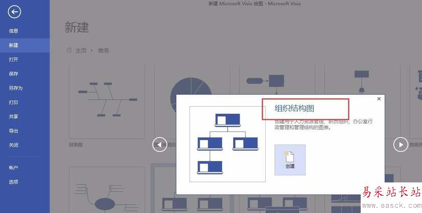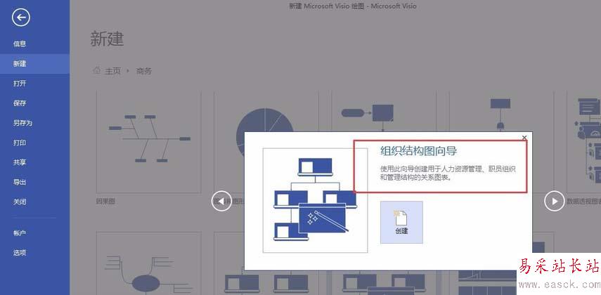 3、新建一個VISIO文件。新建一個空白文檔,模板選用”組織結構圖向導“。