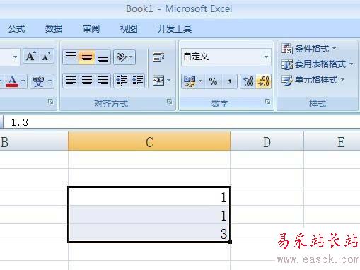 1、如圖所示,當我們打入1.3,1.2,再計算出合計2.5,然后選中三個格,點擊減少小數位。