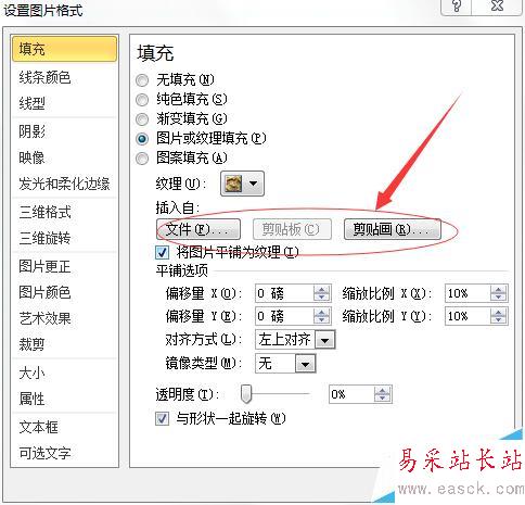 4、圖片的填充(紋理填充)有三種填充方式:通過(guò)文件填充,通過(guò)剪貼板填充,通過(guò)剪貼畫(huà)填充(是內(nèi)置的圖片)
