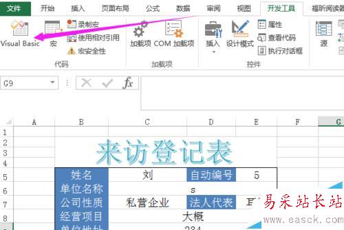 10、下面使用IF函數編輯宏,判斷表格是否完整才執行自動錄入。開發工具-Visual Basic,打開宏代碼編輯的窗口。
