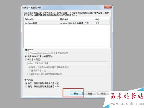 9、把剛剛在AI保存的PDF文件,拖進CorelDRAW X4中,出現“缺失字體的替代字體”時,直接按“確定”即可,如圖所示