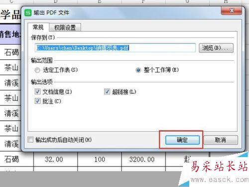 3、出現“輸出PDF文件”對話框,其他不變,直接按“確定”,如圖所示