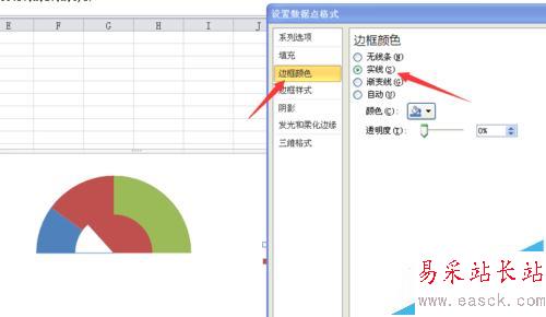 6、設置中間餅圖的邊框和填充,填充色為“無填充”,邊框為“實線”