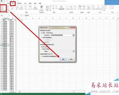 2、然后選擇插入當中的數據透視表,并選擇新建工作表顯示,單擊確定,如下圖所示: