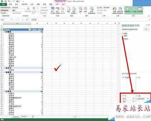 3、接下來我們需要將數據字段,統一的拖拉到指定的位置,即可創建我們的數據透視表,如下圖所示: