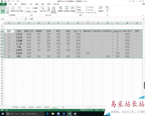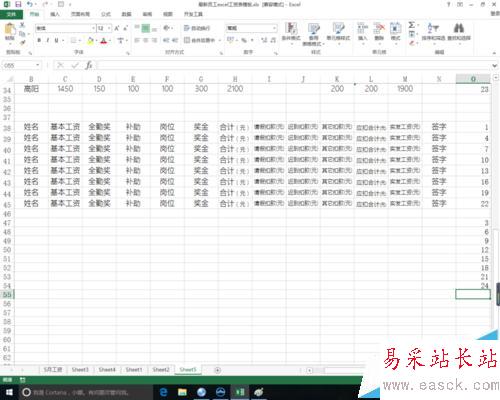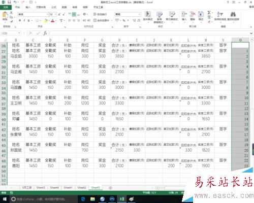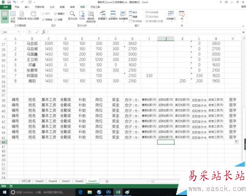 9、現在可以去除掉輔助序列,和多余重復的排頭。完美的工資條就做好了。